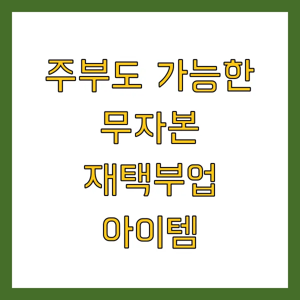 안녕하세요! 혹시 집에서 살림과 육아를 하면서 '나도 무언가 할 수 있지 않을까?', '커피값이나 아이 간식비라도 벌고 싶은데...' 하고 생각해 보신 적 있으신가요? 경력이 단절되어 다시 사회 활동을 시작하기 막막하게 느껴지거나, 초기 자본이 부담스러워 부업 시작을 망설이는 주부님들이 많으실 텐데요.