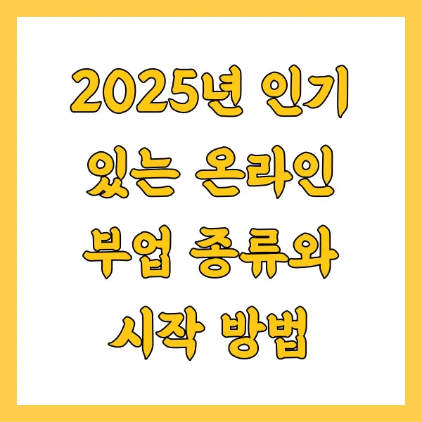 이 글에서는 2025년에 가장 인기 있을 것으로 예상되는 온라인 부업 종류와 각 부업을 시작하는 구체적인 방법, 그리고 성공을 위한 핵심 팁들을 자세히 소개합니다. 지금부터 미래를 준비하고 온라인 부업으로 새로운 가능성을 열어보세요!
