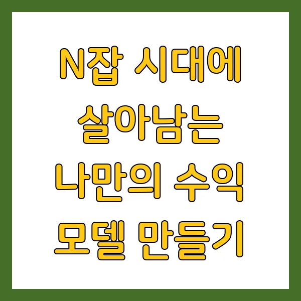 - 본업과의 균형, 그리고 건강 : N잡에 너무 몰두한 나머지 본업에 소홀해지거나 건강을 해치지 않도록 균형을 잘 잡아야 합니다. N잡은 '플러스알파'이지, 내 삶 전체를 갉아먹는 존재가 되어서는 안 됩니다.
